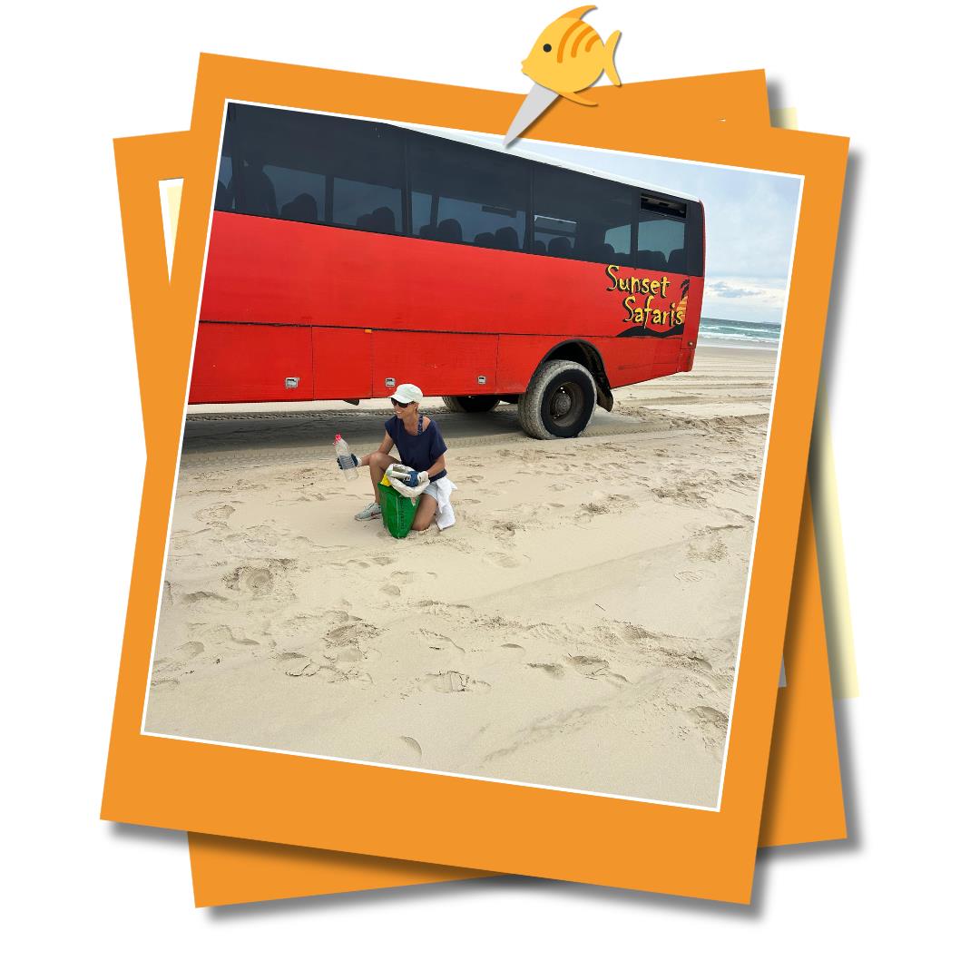Committed to exploring new frontiers of sustainable tourism, we value creating a collective transformative impact on our communities and environment by supporting local charities and initiatives. We are continuing to build on our engagement with local foundation Ocean Crusaders, whose innovative clean-up efforts on Moreton Island (Mulgumpin) we have been supporting since 2019 by providing a driver guide and transportation for all volunteers around the island in our iconic Australia Sunset Safaris big, red bus to remove almost 5 tonnes of waste!